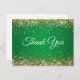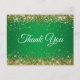 Faux Sparkly Gold Glitter Bright Green Thank You Postcard