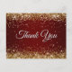Faux Sparkly Gold Glitter Burgundy Thank You Postcard