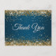 Faux Sparkly Gold Glitter Ocean Blue Thank You Postcard