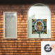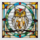 AI-generated art, faux stained glass owl, owl decor, glass door decoration, storefront accents, nature-inspired art, vibrant stained glass effect, intricate owl design, colourful wall art, elegant wildlife decor, artistic owl image, luminous glass decorations, whimsical nature accents, stained glass bird art, owl-inspired home decor