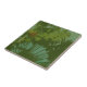 The original artwork by HomeWare on this small Ceramic Tile uses an original photograph to create the illusion of retro or vintage fabric. In the photo, deep green tropical leaves, in bright sunlight and deep shadow, fan out across a background of deep blue sky. The design has an antique green tint over it, and a texture which gives it a look of old silk fabric.