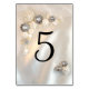 Customise these pretty Faux White Pearl and Diamond Buttons Table Numbers to add a touch of classy to your engagement party, bridal shower luncheon or marriage reception dinner. These elegant custom table number cards feature a photograph of vintage looking white pearl and diamond buttons with a white satin background.