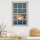 Faux Window White Wood Window Frame Flock of Birds Poster