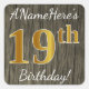 Faux Wood, Faux Gold 19th Birthday + Custom Name Square Sticker