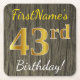Faux Wood, Faux Gold 43rd Birthday + Custom Name Square Paper Coaster
