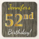 Faux Wood, Faux Gold 52nd Birthday + Custom Name Square Paper Coaster