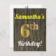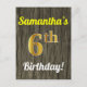 Faux Wood, Faux Gold 6th Birthday & Custom Name Postcard