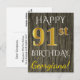 Faux Wood, Faux Gold 91st Birthday + Custom Name Postcard
