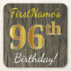 Faux Wood, Faux Gold 96th Birthday + Custom Name Square Paper Coaster