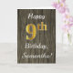 This simple birthday card design features the message "Happy 9th Birthday", with the "9th" having a faux gold-like appearance. It also features a personalised name, and a faux wood appearance background. It could be given to somebody who is celebrating their ninth birthday.