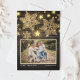 Merry Christmas | Send your warm holiday greetings to family and friends with this customisable photo Christmas card. It features gold glitter snowflakes and stars on a faux wood background. Personalise by adding your details. This rustic Christmas card is available on other cardstock. Matching items are available.