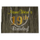 This simple, rustic birthday gift bag design features a personalised message like "NameHere’s 19th Birthday!" (with the "19th" having a faux/imitation gold-like colouring look) on a faux wood look pattern background. The name is in script-like, yellow-coloured text, and can be personalised. A personalised birthday gift bag like this could perhaps be used when giving a present or gift to somebody who is celebrating their nineteenth birthday. [~Z0000259]