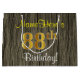 This simple, rustic birthday gift bag design features a personalised message like "NameHere’s 88th Birthday!" (with the "88th" having a faux/imitation gold-like colouring look) on a faux wood look pattern background. The name is in script-like, yellow-coloured text, and can be personalised. A personalised birthday gift bag like this could perhaps be used when giving a present or gift to somebody who is celebrating their eighty eighth birthday. [~Z0000259]