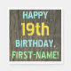Faux Wood, Painted Text Look, 19th Birthday + Name Napkin