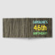 This fun birthday guestbook design features a message like "CAROLINE’S 46th BIRTHDAY!", where the name can be personalised. The background features a rustic, brown, faux wood grain appearance pattern. The customisable message text features colours like blue, yellow, and green, and it has an appearance inspired by that of painted, stenciled lettering. A birthday-themed guest book like this might be used at a party being held for somebody who is celebrating their forty sixth birthday, so that guests and attendees can leave messages. [~Z0000320]