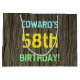This fun birthday gift bag design features a message like "EDWARD’S 58th BIRTHDAY!", where the name can be personalised. The background features a rustic, brown, faux wood grain appearance pattern. The customisable message text features colours like blue, yellow, and green, and it has an appearance inspired by that of painted, stenciled lettering. A birthday-themed gift bag like this might be a fun, silly way to wrap a gift for somebody who is celebrating their fifty eighth birthday. [~Z0000319]