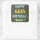 Faux Wood, Painted Text Look, 66th Birthday + Name Square Sticker