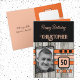 Faux wood rustic 50th orange photo birthday card