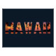 Bold “HAWAII” letters contain a glowing tropical sunset of warm oranges and pinks, with dark palm silhouettes and calm ocean below. The crisp typography and vibrant colours bring a laid-back island-evening feel that’s perfect for evoking sunset strolls on a Hawaiian shore.
