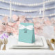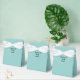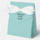 Favor boxes with satin ribbon and your names, elegant personalized blue wedding favors, chic and classic favors