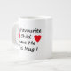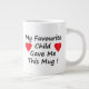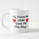 A bit of fun to promote sibling rivalry. My favorite child gave me this mug written in simple text and with two red hearts.