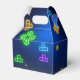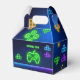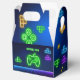 Game on neon green, blue yellow video gamer gift box, unique party supplies.