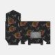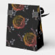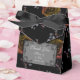 Embrace the elegance of black, Crimson and purple autumn roses, as we relish the beauty of the macabre and the allure of the unknown. This enchanting wedding favour box is a dark floral pattern of crimson antique roses, purples and burnt oranges on black. The front has the couples names and wedding date embellished with ornate black gothic flourishes. This favour box is darkly lovely and an enchanting favour from your unique wedding.