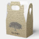One side shows spreading oak tree with Family Name beneath. Other side shows Family Name, Event Name, Location, and Date. All text fields are available for personalisation.