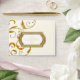 NOTE: This is a flat printed image, there are no jewels, raised layers or gold metallic elements. COLOR PALETTE: soft creamy white with faux gold metallic glitter look DESIGN COLLECTION: Matching formal dinner reception, bridal shower or rehearsal dinner favour boxes for easy decor enhancement. Inspired by Old Hollywood and her heyday glam era, this wedding invitation set is perfect for elegant, sophisticated, modern wedding celebrations. A classic, beautiful swirling leaf damask style pattern has been graphically designed to look like a silver edged gold glittery embroidered lace design with a golden buckle that has a diamond border over faux glitter. A contemporary typography layout for your invite wording and information updates this vintage retro design. A gorgeous, unique and pretty design for the most discriminating bride.