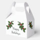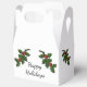 Holly branches with red berries. Two branches at top corners of front and back, single branch on each side. Front shows text "Happy Holidays", which may be altered or removed.