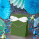Favour Box Tent Style Personalizable Shown with a rich forest green colour background and white bow.