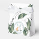 This baby shower favour box features watercolor greenery, fox and white pumpkin with the words "It's a boy" set in trendy blue typography. Use the template fields to add your name and shower date or custom details. Explore more from this charming fox and pumpkin theme at https://www.zazzle.com/collections/fall_themed_woodland_fox_and_white_pumpkin-119146221281062653