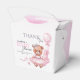 Favour Boxes for baby shower featuring an adorable watercolor illustration of a teddy bear in a cute pink dress.