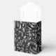 Gorgeous plumes and feathery swirls in "metallic" silver are beautifully dramatic against a black as night background in this stunningly elegant, computer-generated design. Silver, as you might know, symbolises wealth, success and power while black is the epitome of formality, elegance, allure and mystery. No wonder these two are one of the "power" colour combinations. With the addition of the black bow, this gorgeous favour/gift box is an excellent addition to your formal wedding or 25th anniversary party.