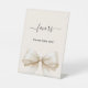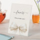 An ivory coloured background, decorated with a large bow. Text: Favours. Please take one!