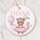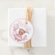 Baby shower gift tags featuring an adorable watercolor illustration of a teddy bear in a cute pink dress.