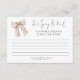 Tying The Knot Cream Bow Bridal Shower Favourite Memory with the Bride Card. The main header, She's Tying the Knot, is in an elegant set script. The rest of the text you can easily personalise.