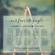Chic sage green frosted acrylic wedding seating chart sign for up to 10 tables featuring "our favourite people" in an elegant script, your names and wedding date joined together by a heart and "We're so glad you're here" in simple modern typography.