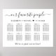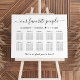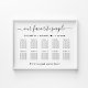 Chic downloadable wedding seating chart poster for up to 10 tables featuring "our favourite people" in a stylish script with swashes, your names and wedding date joined together by a heart and "We're so glad you're here" in simple modern typography. Select the digital download option to edit with last minute changes and print locally.