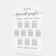 Chic frosted acrylic wedding seating chart sign for up to 10 tables featuring "our favourite people" in simple typography and a stylish script with swashes, your names and wedding date joined together by a heart and "We're so glad you're here" in modern serif typography.