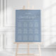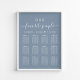 Chic downloadable dusty blue wedding seating chart poster for up to 12 tables featuring "Our Favourite People" in a mix of simple white typography and a stylish white script with swashes, and your names and wedding date joined together by a heart. The digital download option allows you to edit with last minute changes and print locally.