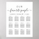 Chic downloadable wedding seating chart poster for up to 12 tables featuring "Our Favourite People" in a mix of simple typography and a stylish script with swashes, "Find Your Seat" in elegant typography and your names and wedding date joined together by a heart. The digital download option allows you to edit with last minute changes and print locally.
