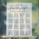 Elegant frosted acrylic wedding seating chart sign for up to 16 tables featuring "our favourite people" in simple modern typography and a chic script with swashes and your first names and wedding date joined together by a heart.