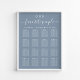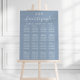 Stylish downloadable dusty blue wedding seating chart sign for up to 16 tables featuring "our favourite people" in simple modern white typography and a chic white script with swashes and your first names and wedding date joined together by a heart. The digital download option allows you to edit with last minute changes and print locally.