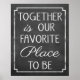 Together is our favourite place to be. Celebrate your love and happiness with this simple sign that brings warmth and sophistication to your walls. Vintage black chalkboard background and white typography.