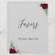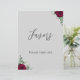 The Favour's red rose wedding sign from Twin Spirit Designs is an ideal addition to any wedding ceremony. The design has a grey backdrop, green foliage, and red flowers.