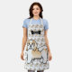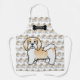 Destei's original cartoon illustration of a cute fawn and white coat colour Bichon Havanais / Havanese breed dog. The dog design is placed as a pattern on the background of the apron as well as a larger size on the bottom. The top has a black dog bone silhouette together with a personalizable text area for a name.