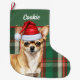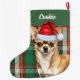 Fawn Chihuahua Dog Holiday Plaid Personalised Large Christmas Stocking