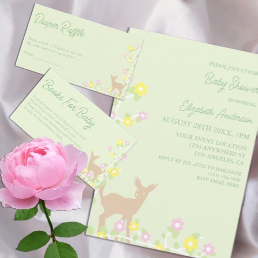 Fawn Floral Girl Baby Shower Books For Baby Enclosure Card