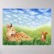 Fawn in the Grass Illustration Poster